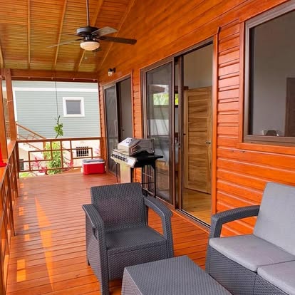 kombinací betonových základů a dřevěné konstrukce, ideální pro tropické klima