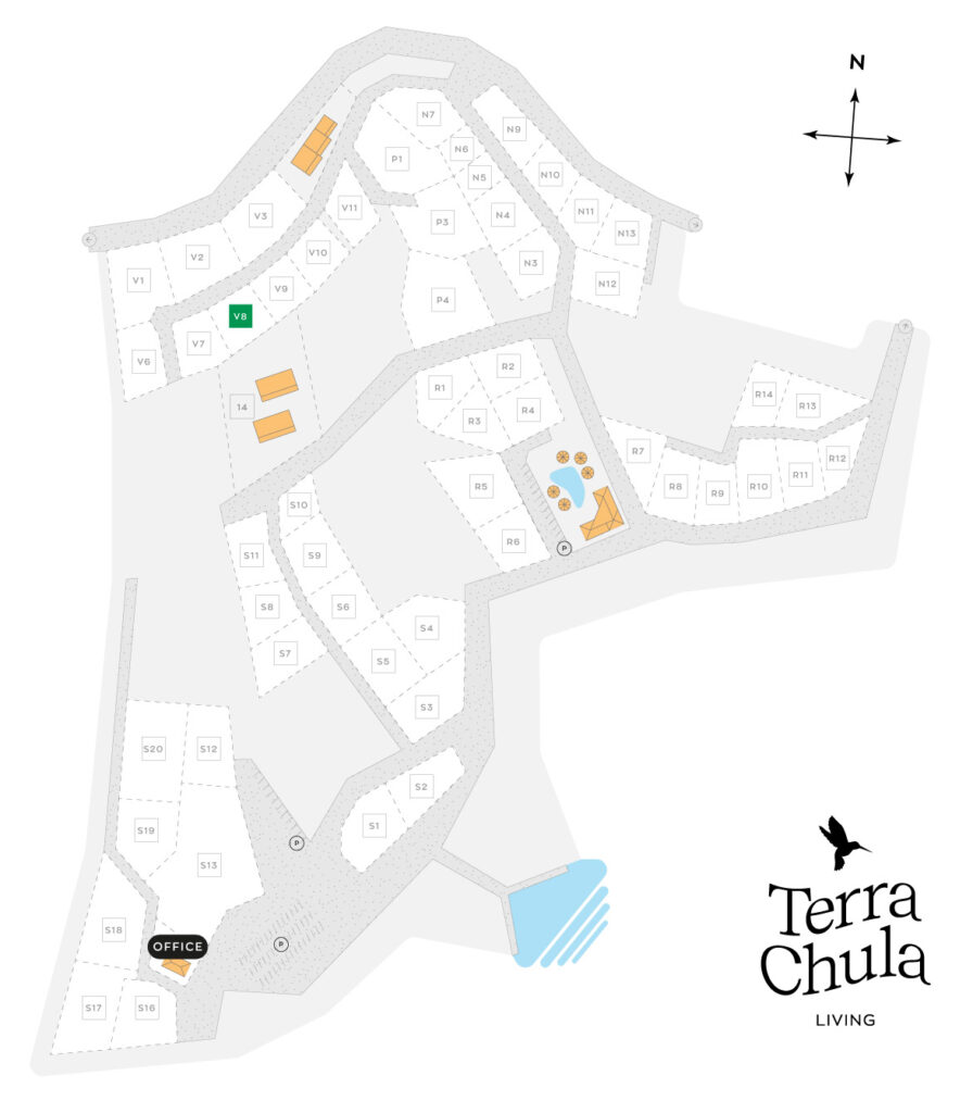 Pozemek S20 se nachází v klidné části resortu Terra Chula, v exkluzivní VIP zóně s omezeným počtem pozemků. Díky své poloze nabízí panoramatický výhled přes zelenou zahradu, uzavřenou mořskou lagunu až na Karibské moře v dálce.